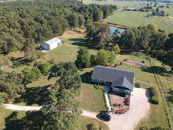 First time ever on the market! This stunning custom built home is neatly situated on 10 rolling acres with a large shop and stocked pond, truly a gardeners dream! With 3 bedrooms, an office, 2 living areas, 4 bathrooms and 2,000+ unfinished basement living area, this is the perfect place for a growing family. The kitchen is the WOW factor in this home with an abundance of counter top space, double refrigerator and freezer, wall oven combo, 2 sinks, and center island! The 32x56 shop has its own separate entrance for easy boat or RV access. The unfinished basement is set up to be a 3rd living area plumbed for a full kitchen. It has a full bath, storm shelter and John Deere room. New roof, A/C in 2017. This home has too many amenities to mention, so this is one to come experience for yourself