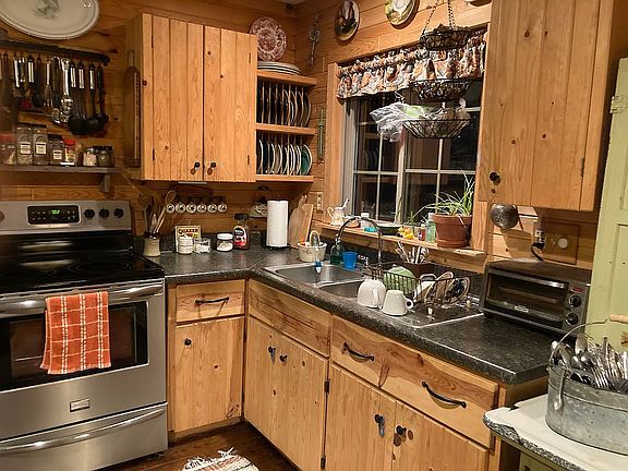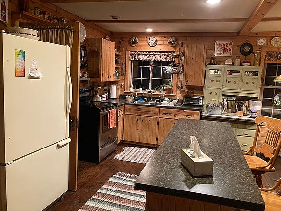 Three bedroom cabin, 1 bath, wrap around porch, open kitchen & dining room, living room with wood stove on 1 1/2 acres with Greasy Creek flowing through property. Two car garage with additional work shop with wood stove and lean too. Has a garden area, garden shed with mature rhubarb, asparagus plants, apple and pear trees. Seller is a licensed broker in the state of Michigan.