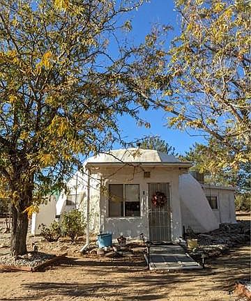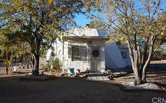 Make this your unique Geodesic Desert Retreat which is close to Joshua Tree National Park. This quaint dome style home sits on 2.5 acres of rural land. Enter through the front entrance, a hallway that is currently used as closet and pantry space. The home has an open floor plan with a large living area that can also be a bedroom, it has a built-in closet. The living area has a cozy wood burning stove to keep you warm in the winter. The kitchen space opens into the living area, which leads to an enclosed space that is currently used as the main bedroom. Off the living area there is one bathroom that has a tub and shower. High ceilings and sky lights are the highlights of this unique geodesic design house. The living area has a dropdown staircase that takes you to a charming loft space. The home also provides a detached two car garage, that has a bathroom with a shower, and laundry area. With two separate storage containers on either side of the garage.This uniquely designed adorable home is surrounded by mature trees (some are fruit bearing trees), it has a fully functional well that is (housed in a shed), which is used to water the desert trees this adds to the character of the rural lifestyle in a Southern California Desert. Built in 1975, as one of the first geodesic design homes in Yucca Valley rural living. This cute house is in a community that is surrounded by BLM land especially the west side of the house. Entire 2.5 acres is fenced and has well-kept grounds, providing cool privacy in a rural desert community. The hot tub is awesome addition for starry desert nights. The house has windows that provides great views of the desert landscape. Home is clean and well-kept, however, requires TLC and updates.This design of the house supports a sustainable home lifestyle. Hence the potential of this home is immense, make it your own oasis as a full-time residence or it can be the perfect vacation home. This property is sold as is, no repairs or warranties.