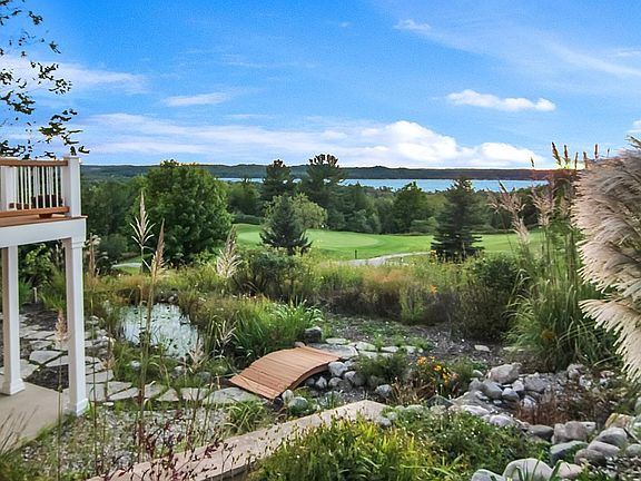 Spectacular sunset views of Lake Bellaire & the Legend Golf Course at Shanty Creek Resort are yours to enjoy from this spacious 6 BR 3.5 BA home. Located on the exclusive Founder’s Ridge, a gated sub of a few homes, enjoy privacy & resort living at its finest, along with access to the Beach Club on beautiful Lake Bellaire. The home has been recently painted inside & out, & offers plenty of room, open spaces, wide doorways throughout, the convenience of one floor living, & a finished lower level living area for guests. Enter to be welcomed by the spacious living room, with gas fireplace, vaulted ceilings & wall of windows to enjoy the massive views. If you like to entertain, the living room opens to a sunroom, with a wet bar, & the deck. Invite your guests to watch the sunsets. An awning extends over the deck for shade. Speaking of entertaining, the kitchen offers multiple prep areas, abundant storage & plenty of space for multiple cooks. The breakfast nook enjoys views of the natural surroundings & towering hardwood trees & you can enjoy a morning coffee on the adjacent deck. A large dining room also has lovely views of the natural surroundings. The laundry is conveniently by the kitchen. The main floor also includes 2 guest bedrooms, along with a bedroom/den off the living room. The master suite completes the main floor & enjoys fabulous lake views. Your oasis away from things, it has a private sitting area & balcony, along with an ensuite bath complete with double sinks, jetted garden tub, water closet & tiled shower. The finished lower level offers three more bedrooms, spacious family room with gas fireplace, kitchenette, & dry sauna adjacent to the bath. For storage, you have space in the lower level & the 2-car garage even offers a space for your golf cart with its own door. Outside, the prairie landscape & water feature enable a lower maintenance yard, & the variety of grasses & perennials offer color & interest throughout the year. Welcome home!