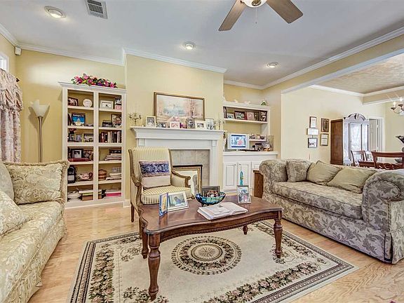 Spacious 3 bedroom, 2 bath home in the city but with peace and quiet. This split plan home features a fireplace, built in cabinets, and new hardwood floors starting in the living room and leading to the dining room. The spacious kitchen features plenty of room to cook and socialize with stainless appliances, tile counters, and a kitchen island, pantry, and tons of cabinets. A large master bedroom wouldn't be complete with out it's adjoining bathroom suite with double vanity, jetted tub, separate walk in shower, and walk in closet. The two guest bedrooms feature neutral paint colors, carpet, and space for your needs. Your guests will enjoy a large bathroom as well. This amazing home also features a screened it patio looking out into the large fenced in back yard. A separate laundry room, ceiling fans through out, 2 car garage, and landscaped yard finish out this well kept home in a quiet neighborhood.