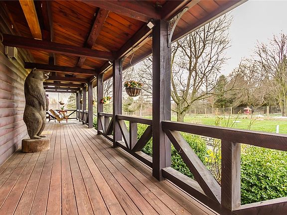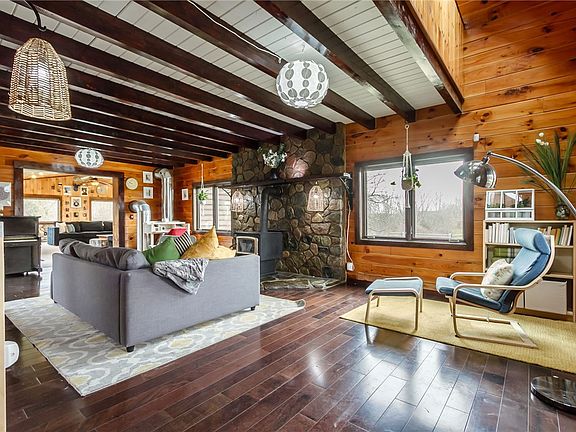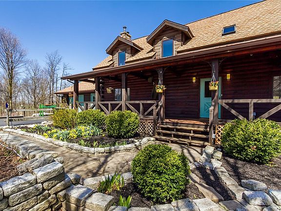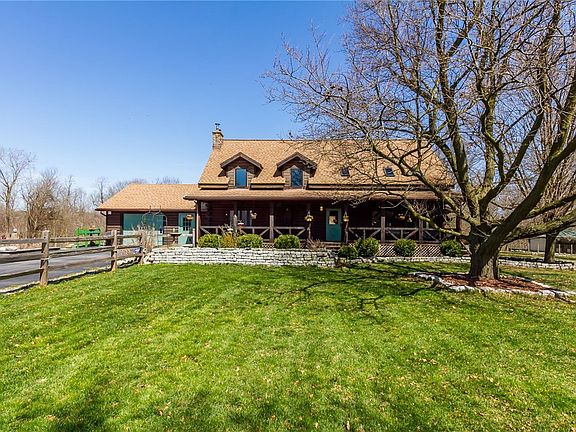 Set back from the road amidst 18.1 lush acres, this 5-bed, 3-bath log home with a 3,000 sq ft insulated pole barn w/ wood stove + 2 sheds w/ electricity is perfect for those seeking the serenity & comfort of updated country living. Embrace the tranquility of the front porch overlooking your fully fenced private yard, complete with a picturesque pond & an expansive deck & patio. The heart of this home radiates warmth, from the vaulted ceilings to the wood stoves. Modern updates like geothermal HVAC/hot water, an induction cooktop, & automatic gate (all 2022) for comfort. Enjoy nature’s bounty with nearly 100 fruit trees & berry, wildflower, & asparagus plants. A wealth of amenities, including a granite breakfast bar, many newer stainless steel appliances, & a walk-in pantry cater to your culinary adventures. The primary suite will be your favorite place to relax, with cathedral ceilings & ensuite with jetted tub. There is a potential in-law suite & first floor laundry. Fiber internet! This property offers a unique blend of privacy and accessibility, all within reach of Avon/Henrietta shopping & Rochester. *DELAYED SHOWINGS: THURS 4/11, 5PM*DELAYED NEGOTIATIONS UNTIL WED 4/17, 10AM