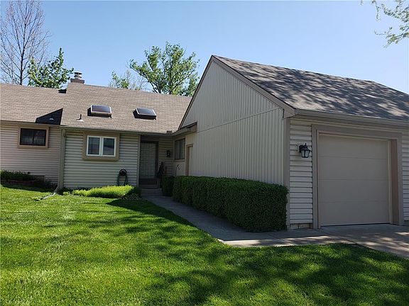 Well maintained True Ranch town home "The Trails" in Gladstone. Vaulted ceilings and full wall Masonary fireplace. Three skylights: Living room, Entry and Kitchen. Wall cabinet in Dining room and corner cabinet in 2nd bedroom will stay. Great room and Master bedroom both have entrance to Over sized deck (15 X 24). Inside and outside entrance doors to garage. No pets and No smoking ever in this town home. $2000 carpet allowance. Lower Level water proofing complete and ready for drywall.