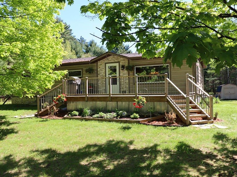 Boulder Junction! 3 bed 3 bath log veneer sided ranch home. This was redone from top to bottom by a top tradesman/master tile contractor. Open floor plan with custom kit/din/lvg featuring porcelain tile floors, marble back splashes and granite tops! Master suite is done in Black Walnut and has a gorgeous "open" yet very private custom designed walk in shower with clear block/tile along with the bath area having the same uniqueness/quality. Main floor laundry/bath done in tile too! The cost to redo what was completed here would be mind boggling! Main floor is bright and airy w/ a great flow right on to the large outside deck for Summer fun. lower level is set up as another living area w/ full kit, living , bedroom and and walk in tiled shower. All utilities updated or almost new so this is a turnkey home! This is a great home with endless possibilities for expansion on the 5 + ac w/wilderness pond zoned AP Multiple uses such as hobby farm, rentals /storage etc.