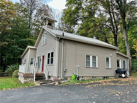 An 1800's Schoolhouse nestled in the hillside overlooking Canandaigua Lake. This 3 Bedroom home has historic character and many upgrades. The original Schoolhouse bell is still in good working condition. 2 car detached garage and plenty of room past the split rail fence for Adirondack chairs and fire pit to enjoy the view. Metal Roof is 5 years old, new siding and windows were replaced 10 years ago, HVAC in 2022, new flooring was installed and the bathroom was refinished recently. No delayed negotiations.