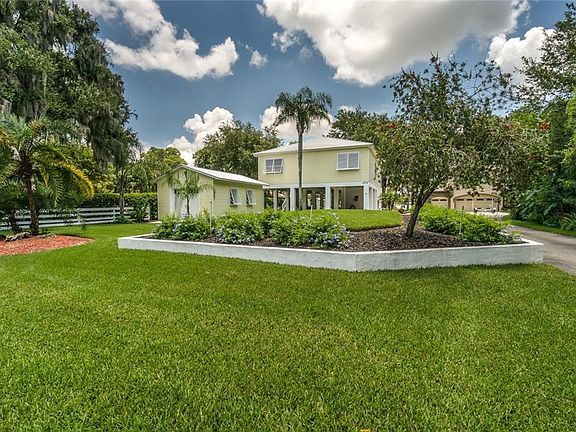 Ski Lake Key West Style Bungalow! This awesome home on an incredible piece of paradise (1.8 acres!) is ready to greet you with all it has to offer, including beautiful composite covered dock situated on the best ski lake around: Lake Thomas! As you enter the property through your own private gate, you will be wowed by the lush landscape and tropical feel. Much care and attention to detail is evident inside and out. Brand new oversized garage/workshop with air conditioning was just constructed and is perfect for storing your "toys". In addition to the oversized garage you will also find a smaller "tiny house" -- perfect for an artist studio or man cave (with AC!) and another workout space or perfect guest room with it's own private bathroom and access to the sprawling covered entertainment area on the first level overlooking the lake and dock. Enjoy the lake from the many areas carved out just for relaxing, including seating areas on and near the dock! Inside the home you will find beautiful views of the lake from the living room, dining room and kitchen as well as the rear screened porch which stretches the entire length of the rear of the home. Very well appointed, and very well thought out, this home lacks nothing when it comes to style and charm! Wood laminate floors, white kitchen cabinets, tumbled travertine backsplash, granite, nice closet storage, HUGE pantry with "breakfast bar"...and sooooo much more, including hurricane shutters...Schedule your appointment today to see this beauty!