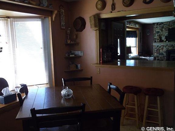 2 acres with additional acreage available. Lovely Ranch with a 4 car garage & utility shed. Overlooks Conesus Lake. Paved driveway, Master BR has sliding glass door with deck. Public water at property line. New metal roofs on house & shed. Garage has heat & a bath. House has 2 gorgeous fireplaces . The Florida rm SF is included under the square footage above