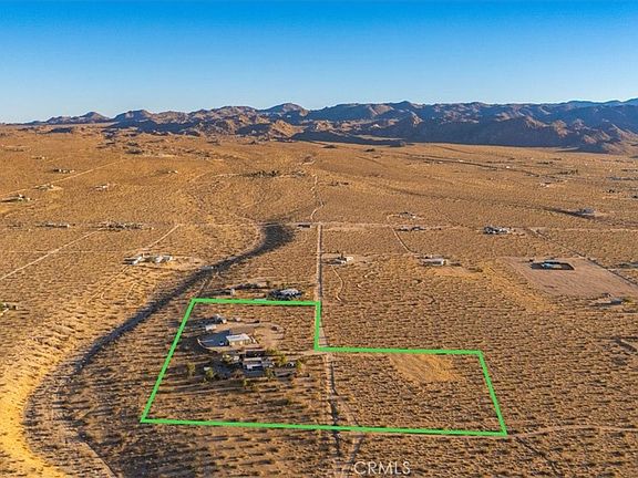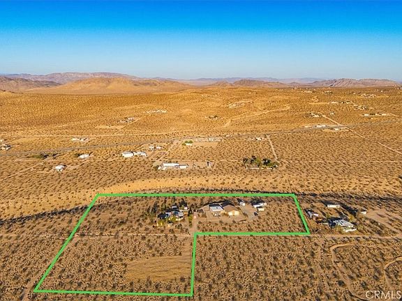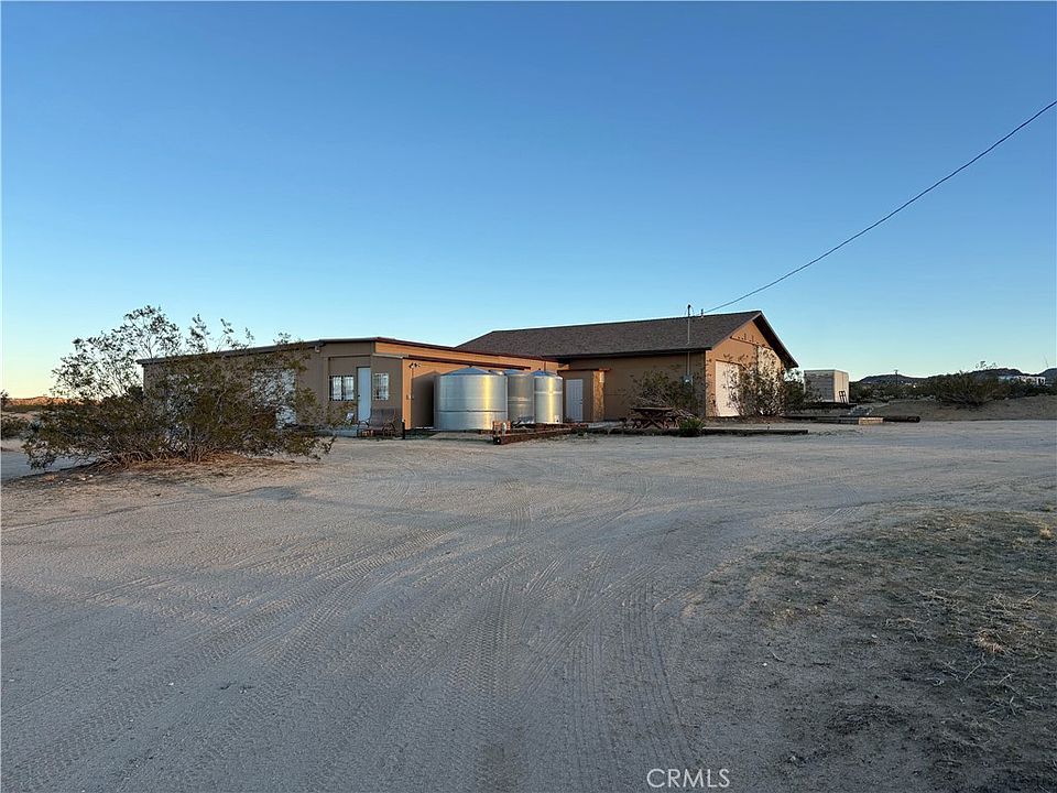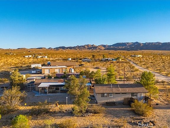 PRICED TO SELL! Come make 5975 DESERT STAR yours to enjoy. This property has everything that those moving to the area are looking for and then some.This compound has two really nice homes that are move in ready and an OVER 3500 square foot garage and workshop with a mechanics dream, 6 auto bays. Larger than some auto shops. All this is situated on two beautiful parcels totaling over seven and a half combined acres. Awesome panoramic views in all directions and just minutes down the road from the off road mecca, the Johnson Valley (OHV) Off Highway Vehicle grounds which hosts several off road events including one of the largest in the nation, The King of Hammers. The spacious main home is just under 2000 square feet of living space and was completely renovated by the current owner right down full plumbing and electrical. It features a large primary bedroom with a walk in closet, a large open kitchen with a walk in pantry. A bonus area and one of the nicest features, the roof top deck where you can enjoy expansive views and incredible night skies. There is an enclosed porch with jacuzzi and nice patios front and back for relaxing on or entertaining. The second home is 489 square feet and was custom built by the current owner. It is a 1 bedroom, 1 bath and attached garage. The garage has a 3/4 bath so could be changed into a second living space. Imagine that! Both homes have solar panel systems making heating and cooling practically free. Then there is the extraordinary detached garage/workshop. Custom built by the owner/contractor with full permits. With 6 garage bays including two which are RV tandem bays so an RV can drive in one side and exit the other. Within the workshop there is also an office, a full bathroom, full laundry facilities, storage rooms and plentiful built in shelving. The current owner built it with the intention of being able to covert half of it to a single family home if desired. Also the RV bays are full RV hook ups for connection. The entire property is fed by a well that water was found at 235 feet. The well casing is dropped to 542 feet for added water table depth. The entire property is fully fenced with gated entries and several out buildings and sheds. Located less than an hour from Palm Springs and Big Bear Lake and half an hour from the main entrance to Joshua Tree National Park this is a great jump off point for fun and adventure.