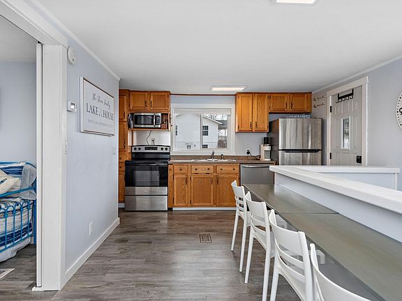 Only available due to relocation. All furniture and dock included with sale. Rare opportunity to own over 50 feet of pristine sandy shoreline on Maple Lake! Whether you're looking for a cabin or a year-round home, this piece of paradise is the perfect retreat just 45 minutes from the Twin Cities! The interior is tastefully updated and meticulously maintained throughout, with newer luxury vinyl flooring and recently renovated main floor bath! Both bedrooms walkout to the patio and provide picturesque lake views. The large deck is an extension of the dining area and features stunning views. Below you can enjoy the spacious patio & firepit, tiered landscaping, and a flat yard along the shoreline for games and sunny water recreation! So much space for relaxing and hosting friends & family! Maple Lake is one of Minnesota's premier lakes with nearly 1,000 acres, 12' water clarity, full recreation, great fishing, a strong association, and conveniently located less than 15 minutes to Buffalo or Monticello for shopping, dining and entertainment.