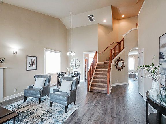 Sunrise Pointe 4 Bedroom! This welcoming home has new plank floor on the main floor. Living room boasts vaults & gas fp and opens to formal dining Open kitchen, walk in pantry, granite, SS appliances & island. Great room leads to new deck for entertaining & fenced backyard! Primary suite on main boast vaults, WIC, dual sinks, soaking tub & shower. Upstairs loft is open to below as well as 3 additional bedrooms & full bath w/ separate vanities & private shower/bath. Near Wes Bennett & Pringle