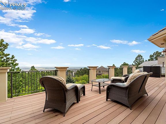 A fantastic find in the highly desirable Spires Broadmoor neighborhood! You will love this bright and open floorplan with loads of tasteful updates making this home feel brand new ~ the entire home, all walls & trim and the garage have been freshly painted! So much quality and thought went into every inch of this home. New light fixtures - all surface mount lighting changed to LED, new light fixtures on main level and stairwell. From the moment you step inside, you will be captivated by the soaring ceiling, floor to ceiling windows with million dollar views for miles! The main level features freshly refinished wood floors, a large Great room with custom built-ins, stacked stone gas fireplace, architectural angles, vaulted ceiling, a formal dining room with new lighting, large laundry room with cabinet space & utility sink. Take in the VIEWS on the expansive composite deck!The gourmet kitchen features a spectacular breakfast bar, loads of cabinet space, glass tile backsplash, new hardware/faucet, 5 burner gas cooktop, center island with lots of storage space, 2 pantries, new GE oven with steam self cleaning, huge convection/microwave, warming drawer, deep stainless double sink & vegetable sink. The adjoining eat in space is a delight with breathtaking views. Main level luxury Primary. A private main level office offers inspiring views. The upper level offers a beautiful loft that can be used as a 2nd office or homework room ~ the possibilities are great and overlooks the lower level. Two secondary bedrooms with a jack and jill bath offer the space and privacy you need. The walk out lower level has all brand new carpet! It is finished and an entertainers delight showcasing a huge recreation room with gas fireplace, custom built-ins, a wet bar with mini fridge, a walk out to a gorgeous concrete covered patio with meticulously cared for garden. 3 additional bedrooms offer great space, another full bath a 3/4 bath & huge storage space complete the lower level.