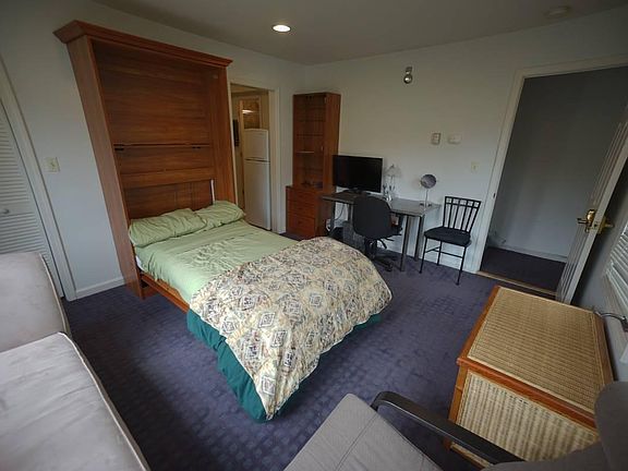 Available Now. UPPER ROCKRIDGE PRIVATE STUDIO AVAILABLE FOR MINIMUM ONE MONTH UP TO MAXIMUM 6 MONTHS. ONE PERSON ONLY. ROCKRIDGE Studio FURNISHED Private Suite Apartment: 10 Minutes WALK to BART. CLEAN. COMFORTABLE. MODERN. Private ENTRANCE Suitable for one person only. Rockridge Private Studio Suite in Heritage Home $600 per week, monthly rate is $1900. Rent includes all utilities included, as is the use of a shared washer and dryer, and internet wi-fi. Absolutely no smoking of any kind anywhere on the property. Absolutely no pets. Requires a commitment to live in a quiet, considerate and clean property. The Studio Apartment has a private building entrance within a 1924 Spanish Mediterranean home, and there is a secured door to the apartment itself (a stairwell leads to the shared washer and dryer, all included in the rent). The main room is 14 ft. x 12 ft. and includes 4 large windows (with south and east exposure). There is a closet, plus included furnishing of: twin size Murphy Bed, solid wood "Tall Boy" chest-of-drawers; granite table top; very comfortable chair with ottoman ; large antique rattan wicker basket to hold bedding material. All bedding material is included, including memory foam topper, mattress pad, sheets, comforter with duvet cover, pillows, etc. Towels, soap, shampoo all provided. The room is carpeted with a very nice commercial grade berber. The kitchenette, 8 ft. x 10 ft., includes a solid maple kitchen table (with 2 folding sides for various sized configurations), 4 chairs, kitchen cabinets, portable dishwasher, microwave, sink and modern refrigerator with glass shelves. There is a counter-top induction cooktop but no built-in stove. There is a panini grill and counter-top small oven, coffee grinder, Keurig coffee maker and nice Panasonic toaster-oven; cookware, plates, bowls, cups, glasses, utensils, etc. are also provided. The floor is nicely tiled with a commercial grade porcelain tile. The bathroom is fully tiled with a beautiful porcelain multi-color pattern, including the shower. The shower has an upgraded thicker clear glass and modern ventilation to prevent mildew. Large private patio garden area included with bbq, outdoor chairs and glass tabletop. The rent includes all utilities and wi-fi internet, washer and dryer including laundry detergent. Absolutely no smoking on the property, suitable for exactly one person, absolutely no pets. There is street parking only.