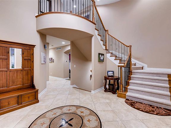 A true gem to say the least! This is the most sought after floor plan on one of the largest lots in the neighborhood & surrounding areas (Just down the street from some of the most desired public schools in Colorado). Excellent for all Lifestyles. Model Home worthy w/ just the right amount of luxury & functionality, this home's sure to satisfy! Boasting w/style, class & character, you'll be proud to call this HOME! Gourmet Kitchen featuring Stainless, Granite, Double Oven, Gas Range & Designer Cabinetry. Notable highlights: Main floor bedroom w/ attached bathroom, High Tray Ceilings, LED lighting w/ dimmers, Elegant Tile Detailing, plantation shutters, dual-zone temp. control, all custom closet systems, wide staircases, surround interior/exterior speakers, pro landscape, built-in grill, stamped concrete, FULL basement w/10 ft. ceilings (Invaluable basement layout & Configuration), basketball court, large 3 car garage (finished, insulated) w/ extra storage!
