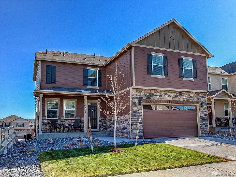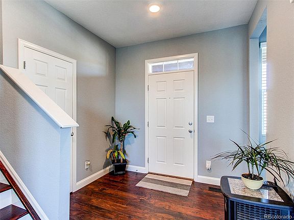 This gorgeous 2018 built 2 story homes does not disappoint! An open floor plan with 2019 hand scraped, engineered hardwoods and new interior paint paint create an elegant feel. Upgraded kitchen with espresso cabinets, granite counter tops, a large center island, stainless appliances, walk-in pantry & open dining with deck access. The upstairs has a huge master suite with walk-in closet and master bath. There are 2 additional bedrooms and a flex space for whatever you desire; loft, office, playroom. Flex space can also be easily converted to a 4th bedroom. Upstairs laundry is ideal. A walk-out, 900+ sq ft basement (with rough-in) is ready for you to finish however you like! Hiking trail across the street and easy access to 600 acres of open space and wildlife areas. Pinnacle Park & Rec Center included in HOA and Rhyolite Regional Park is an easy drive.