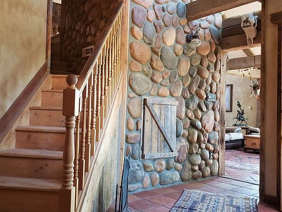 This WESTERN STYLE home was build with Love and Character. This Home was built solid with ICF. Exterior is sided with CEDAR SIDING and CULTURED STONE. The decks are made from WESTERN RED CEDAR and accented with 100 year old beams taken from the RAILROAD TRESTLE that crossed SALT LAKE. As you enter the home you will notice the special designed doors and MEXICAN SALTILLO TILE on the floors throughout the home! As you enter the Living room you will notice more large beams which were brought from a TEXAS PIPE YARD and a great CULTURED RIVER ROCK FIREPLACE. The NAPOLEON Air Tight Fire Place has a cold air return in the basement and on the cold winter days will heat the entire home. Walk into the Kitchen which has CYPRUS Cabinets, tile counter tops and a DOUGLAS FUR BUTCHER BLOCK. There are 2 bedrooms and a loft. Downstairs there is a semi finished basement with a small office and has potential for a third bedroom. Walk out onto the back deck into the back yard where there is a nice fountain and pond feature to enjoy on those nice summer evening. Also included is a barn and a chicken coop for your furry and feathered friends. Sound Intriguing? Call today to set up your tour!
