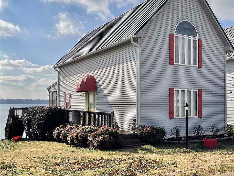 Breathtaking view of the Tennessee River. 22" vaulted ceilings and hardwood floors through out the main living area. Large Screened in Porch overlooking a panoramic view of the Main Channel. This home features an open floor plan with 2 very spacious bedrooms. Large family room with gas log fireplace. HVAC and New Roof 2014. Come experience this great community with Restaurant, Marina, and Public Boat Launch. Great concrete pier that is shared with the home to the left. A Detached Garage can be built across the road from property. Professional pics coming soon!