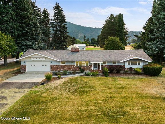 Gorgeous remodeled Dalton Gardens home on nearly 2 acres! This home features 4 bedrooms, 3 bathrooms, 3,184 sq ft, hardwood floors, spacious kitchen with granite counters, custom cabinets and walk-in pantry, living room with large stone fireplace, master suite with double sinks and walk-in shower, office, full, finished basement with family room, large laundry room with tons of storage, folding table, sink and a craft area. Outside enjoy the open patio, fenced yard, sprinklers in front and back, 1.94 beautiful acres, views of Canfield Mountain and 3 outbuildings including a 30x50 Quonset shop with full power, a 30x40 workshop with gas stubbed and electrical for future furnace, 220 V power, electrical, and fully insulated and a 12x20 garden shed with full power and fenced garden area.