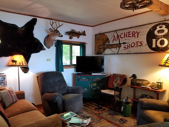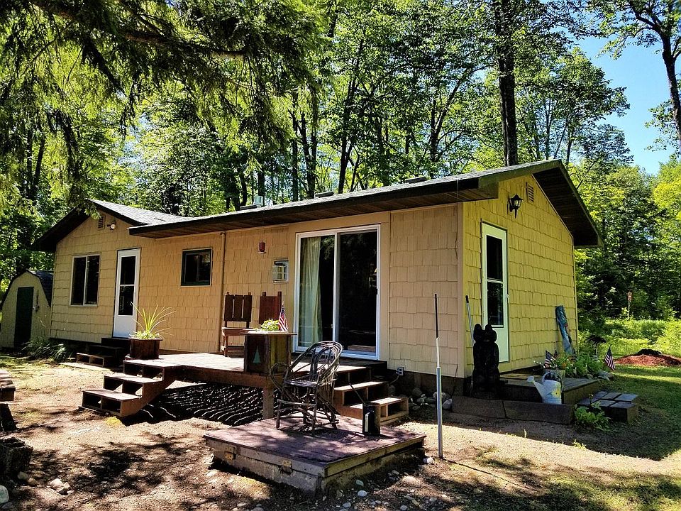 MARGARET LAKE- Charming 2 bedroom, 1 bath, 4-Season cabin having northwoods atmosphere with hardwood floors, dcor & open living concept. Living room has free standing gas fireplace & sliding doors leading to lakeside open sun deck. Kitchen with wooden cabin style cabinets & counters, stainless steel refrigerator, stove. Dining area with its own free standing gas fireplace, another doorway for easy access to the lakeside for stepping outside for easy grilling & entertaining. The 2 bedrooms have log beds, some furniture & kitchen ware are included & move in ready. Also has a detached 2 car garage ready for storing your recreation toys & shed. Located on peaceful Margaret Lake with nice sandy beach area with roll-in pier, pontoon paddle boat & other boats, lakeside firepit with log outside furniture are all waiting for you to start enjoying now. Easy access to ATV-Snowmobile Trails plus you have access to use a private boat landing to Payment Lake within walking distance.