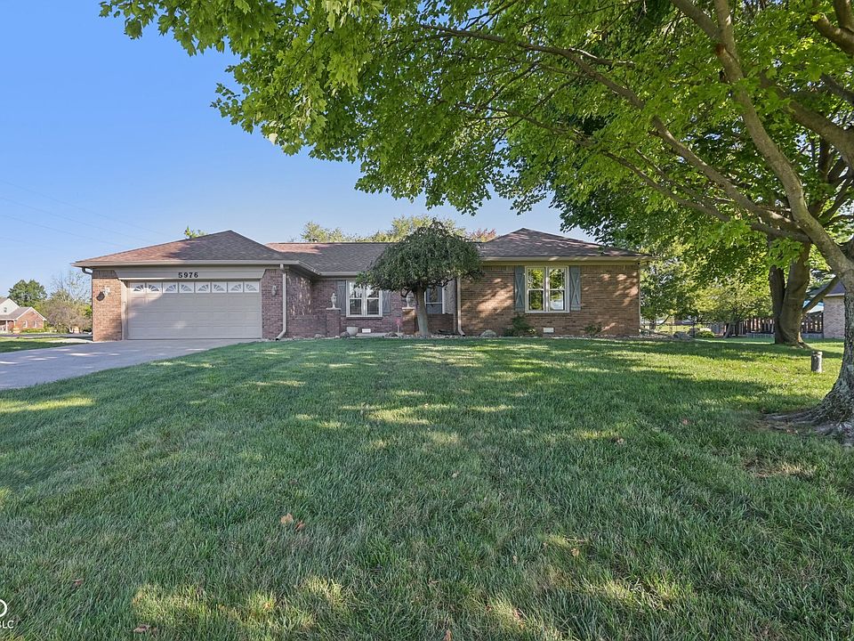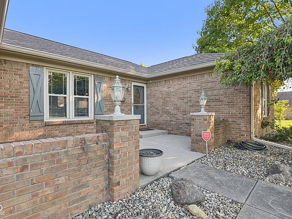 Welcome home! This all-brick ranch has been lovingly maintained by the same owner for 23 years-and now it's ready for you. Nestled in New Palestine's sought-after Countryside neighborhood, you'll enjoy the convenience of walking to schools, a grocery store, coffee shop, and restaurants, plus easy interstate access. Inside, you'll find premium vinyl plank flooring, a cozy gas log fireplace with whitewashed brick hearth, solid wood doors, vinyl-wrapped windows with decorative glass, and ceiling fans in every bedroom. The home also features a high-efficiency HVAC, whole-house surge protector, spacious laundry room, pull-down attic access, and a 240V plug in the garage. The kitchen was updated just 2 years ago with Corian countertops, professionally painted cabinets, decorative backsplash, and sleek black stainless appliances-including a double oven. Step outside to your .68-acre lot with mature trees, no backyard neighbors, low-maintenance landscaping, rock beds, firepit, and a large deck with pergola. A storage shed with electricity and roll-up door adds even more function. Don't miss this one-schedule your showing today!