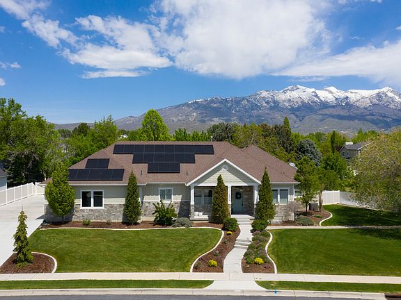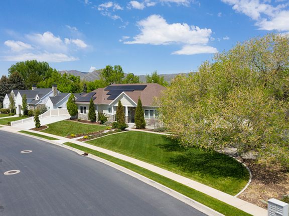 Solar Paid Off! $8 a month electricity bill to run the A/C in this heat!!! Located in the heart of Highland, this custom rambler home features an open floor plan with a huge 4 car garage that sits above an indoor sport court (already setup for basketball, soccer and volleyball), control4 system with professional grade media cabinet with indoor and outdoor speakers, full security system, workout area (could convert into a 5th bedroom), heated floors outside from master to hot tub as well as indoor in master bath and basement family room, gourmet kitchen with quartz and custom cabinetry including overlay fridge, marble in bathrooms, wide plank wood floors, and lots of room for storage. Pet lovers will enjoy pet flaps to a fully fenced yard with mature trees. Grilling enthusiasts will love the built-in Viking BBQ in the outdoor covered patio (and under that an unfinished room that could be your future office). Great location and neighborhood. Within walking distance to top Alpine district schools and walking trails, plus just minutes from beautiful American Fork Canyon.