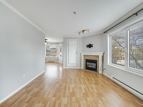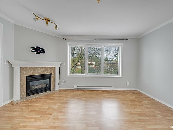 Introducing the Stetson: a spacious 2-bed, 2-bath corner unit spanning nearly 1200 sq ft. Enjoy ample room for full-sized furniture, a cozy fireplace, and large windows flooding the space with natural light and freshly painted throughout. The master bedroom accommodates a king-sized bed and boasts morning sunshine. Additional perks include a private covered balcony., clubhouse, wheelchair access, elevators, extra storage, manicured gardens, and secured parking. Prime location in Cloverdale, close to schools, shopping, transit, and restaurants. Don't miss the Open House Sat March 30th from 2-4 pm.