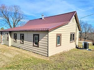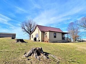Cozy country charm with an incredible view in this 3 bedroom, 1 bath that dates all the way back to 1905. Updated with a new metal roof, new windows, central heat & air, new Martha Stewart kitchen cabinets, new fixtures and appliances, and updated wiring and plumbing. This home includes beautiful hardwood flooring and while the home is on rural water, there is an original cistern inside which has been closed up adding to the country vibe and serves as a conversation piece table! Located just outside of town sitting on a little over half an acre. A newer 24'x12' storage building is outback which includes a full garage door and ramp. Property also includes a cellar with electric available.