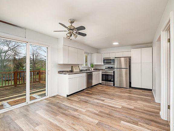 Welcome to your new home in White Oak, Green Township: A captivating 4-bedroom, 2.5-bathroom home with newly refinished hardwood floors and a fully renovated kitchen boasting brand-new cabinets and appliances. This home enjoys ample natural light. It also features two bonus basement rooms, one with a walkout to a fenced backyard adjacent to Blue Rock Park. Located on a no-outlet street, within walking distance to White Oak Middle School and the Gold Top Dairy Bar! Vacant and ready for move-in!