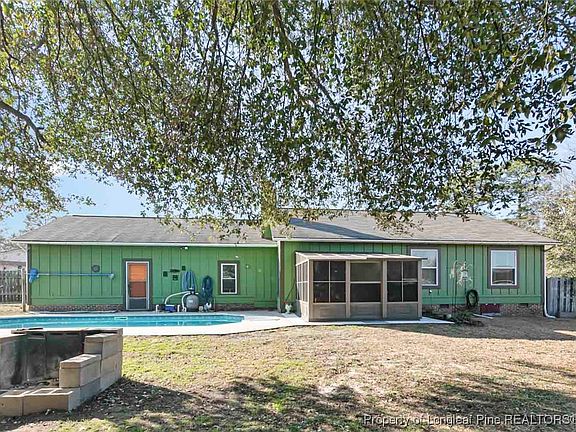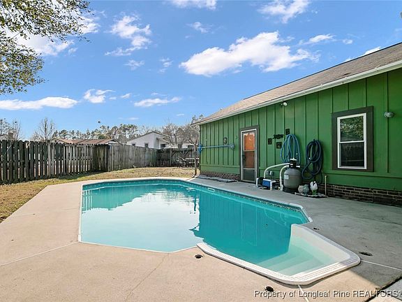 Don't miss this beautiful corner lot home in the highly sought-after Jack Britt School District! This updated, move-in ready home features 3 bedrooms, 2 full bathrooms, and a spacious oversized garage. The inviting living room boasts vaulted ceilings and a wood-burning fireplace, creating a cozy atmosphere. Scoot over to the additional den and a bonus room offering more space for work or play. Enjoy year-round comfort with a new HVAC system. Step outside through your enclosed patio into a private, fenced backyard with an inground pool—perfect for relaxation and entertaining. Inside, you'll also find updated kitchen countertops and cabinetry, real hardwood flooring, as well as updated bathrooms and light fixtures. The home also includes a smart gas stove, updated refrigerator and dishwasher, and, microwave, washer and dryer can stay as gifts to the new owner! Schedule your showing today!