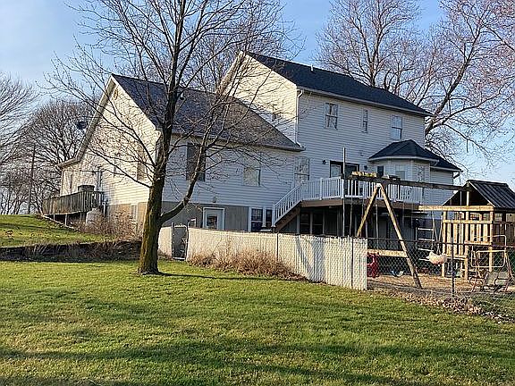 Two-story house on full walkout basement. Attached to car garage five bedrooms. Spacious kitchen with the breakfast nook, oak cabinets, a pantry. Master bedroom on the main floor with walk-in closet master bath has walk-in shower and whirlpool tub. Family room. Dining room with cathedral ceiling. A den which could be used as a bedroom. Patio doors open to the deck. Laundry entrance from garage and separate stairway in the garage to full basement with kitchen and a half bath.