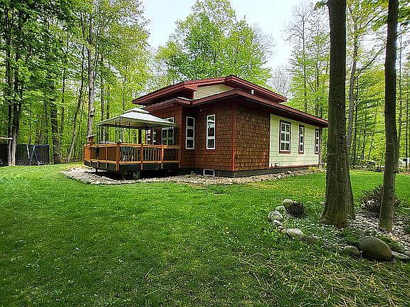 MUST SEE HOME! MOVE IN READY! WELL MAINTAINED! ONE OF KIND CUSTOM BUILT! This custom built up north 3 bedroom 2 and a half bath sanctuary is nestled on a well-maintained corner lot in the community of Michawye. This area and home are very accommodating for all ages whether a family or retiree resides within it. Home has been well maintained and is in move in ready condition, a sanctuary in the woods and yet near town! Enjoy outdoor time including option to include lot next door creating just short of 1 acre with small walking trails if you need a little more room to stretch, all wooded grounds maintained and cleared from rotten wood etc, watching wildlife out your back door is a everyday thing, bonfires, Opal Lk. activities, golfing, snowmobiling, very close to Otsego Lk. & Gaylord Downtown only 6 miles away!!! Amenities include indoor/outdoor pools, sauna, hot tub, tennis courts, golf course and restaurant/clubhouse. This custom built home offers high ceilings, 2nd floor view points overlooking 1st floor living with lots of custom touches including but not limited to reclaimed wood accents, 6 inch maple base trim throughout, 4 inch maple door and window trim throughout, all 3 panel maple doors throughout, stainless steel electrical covers throughout, industrial style interior door handles throughout, beautiful tall windows throughout, Main floor master bedroom and master bath, walk-in closet, main floor laundry. Main floor includes 16 inch x 16 inch sealed tile floor in kitchen, glass tile backsplash, 5 burner cook-top, double oven and more. Staying on main floor, but moving on to master bath you will find 12 inch x 12 inch sealed tile floor, beautiful sealed tile walk in shower, custom counter, vessel sink, and more. You will find maple hardwood 3 1/4 inch flooring through out the remaining main floor. Upstairs floor consists of 2 bedrooms overlooking beautiful woods,landscape and more , full bath and bonus room. In the upstairs bathroom floor you will find 8 inch x 8 inch sealed tile floor, custom counter, vessel sink and more. Custom reclaimed 3 1/4 inch & 5 inch wood flooring finishes the remaining upstairs level. Basement has high ceilings and is partially finished including one fully finished room and partial finished family/media area, large storage area with industrial strength shelves and mechanical room. A MUST SEE PROPERTY!!! PLEASE FEEL FREE TO REACH OUT IF INTERESTED!! Contact info (989) 370-5234 or email manbrad2010@yahoo.com