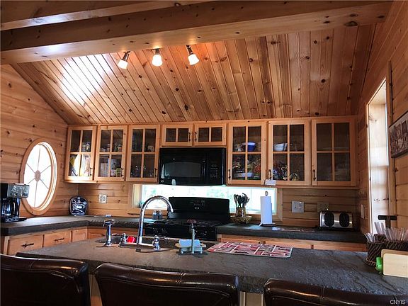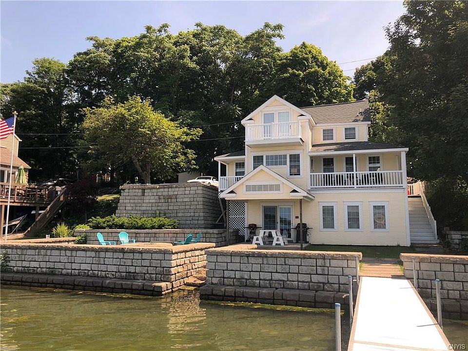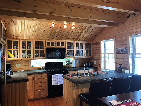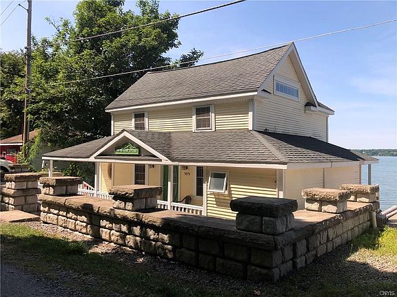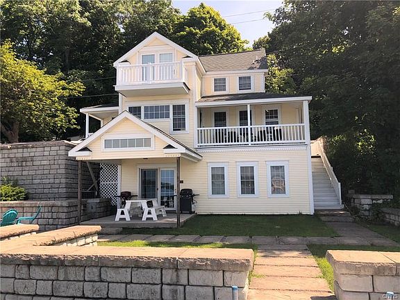 Custom Built Lake Home situated on 70 ft of Beautiful waterfront. On the Eastern shore of Cayuga lake you will find this Beauty.Built with Knotty pine walls & Ceilings accent the open floor plan. The kitchen has a center island made of stone with a dining area & plenty of Cabinets.The living room is perfect size with a gas fireplace & Balcony's over looking at the lake.Brand new full bath finish the 1st flr. The master bdrm offers it's own balcony to enjoy sunsets in the evening. The Lower floor has 3 built in bunk beds, full bath & washer & dryer. through the sliding doors to the Custom stone break wall,fire pit & patio. All decking & docks are composite .Spray foam insulation & full bath w/in last year. Maintenance free home .Water,Wineries & Boating can be all yours! Flood insurance required