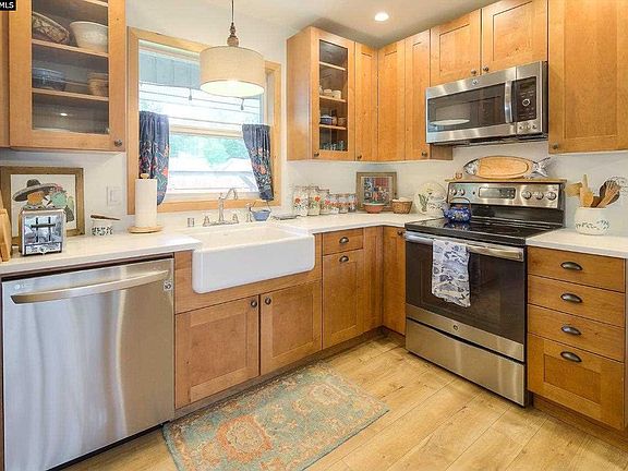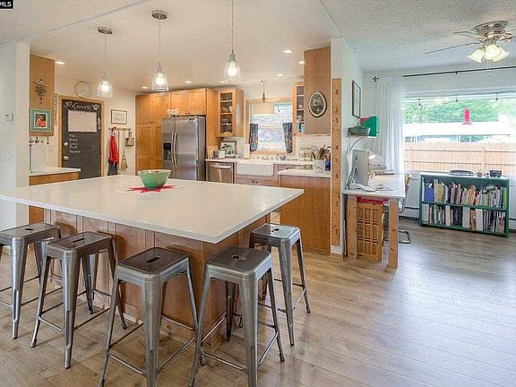 Centrally located stunner! This 3 bedroom, 2 bathroom home has a fully remodeled kitchen and all new flooring throughout. The kitchen offers stainless steel appliances, solid surface counter-tops, and a large central island. With this open concept living space it's great for gatherings and entertaining! Off of the living space is a great cutout for an in-home office. In 2013 this home received a new wood stove and hearth, new windows, and insulation in attic and crawl space. The outdoor space mirrors the condition of the interior with a new front and back fence within the last two years. In the front there's a privacy fence with a garden and chicken coop. In the back there's a large covered deck to enjoy the outdoors rain or shine that was built in 2012. The back is also fully fenced with a shed, a play set, fire bit, and plenty of place to play. Call today for your private showing!