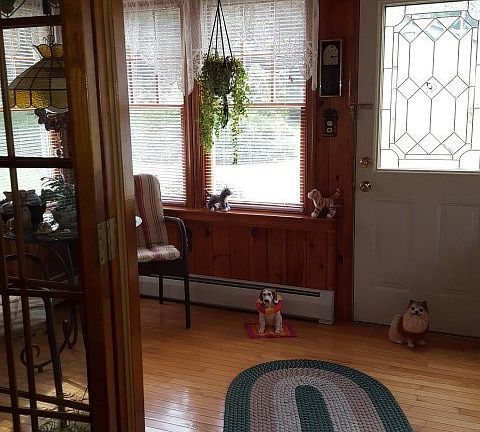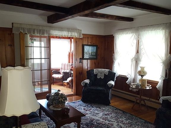 Old World Charm! Welcome home to this cozy 1940's Cape! Features include lovely woodwork, wood floors throughout, large, sunny living room with french doors that lead to the tranquil sun porch, dining room, country eat-in kitchen, four bedrooms, a "secret" room and 2 full baths! A full basement with storage, workshop and a 1 car garage. Nicely set on 1.6+/- acres that is mostly level with mature trees and a nice fish pond. Don't miss out on this charming country home!