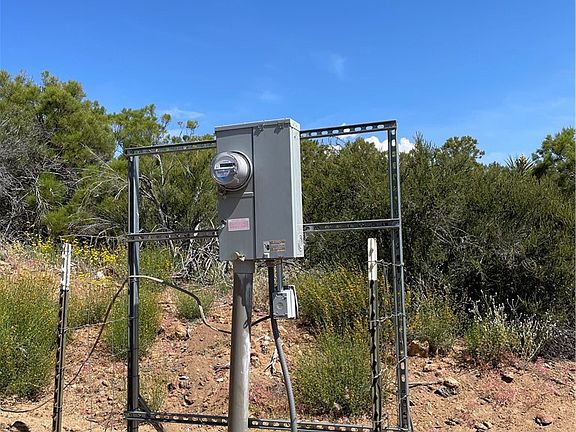 This 9.5 acre parcel has electricity and good working well with all the equipment,owner says 60 gallons per minute (per seller). 5,000 gallon water storage tank. Corner lot, Great views from top of property.Varied topography with lots of native vegetation. End of Road privacy. Chainlink fence on 1 side. Great property for custom home or a weekend family retreat. There is a travel trailer on the property.Property sold in present condition. Owner will carry with 50% down.