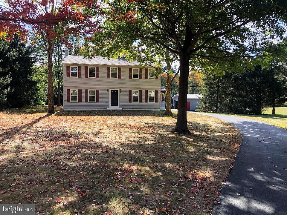 Yardley 4 bedroom 2 and 1/2 bath colonial on a beautiful 2.67acre park-like setting lot that is tree-lined with tons of beautiful mature trees and plenty of private open space, perfect for garden lovers or anyone looking for a great spacious lot, 2 car detached garage, large storage shed, full basement with extra high ceiling and Bilco doors for easy access, the first level has a nice open kitchen with granite countertop, living room with wood burning stove and laminate flooring, dining room, laundry room with door to side porch, 1/2 bath, the second level has 4 nice size bedrooms, large hall bath, main bedroom with full bath and nice size closets, the following recent updates are (2021) new windows installed throughout the entire house, (2022) new roof installed and (2021) entire new driveway, electric baseboard heat, public water and sewer plus the well is still active that is used to water the garden and wash the cars ect. extremely low property tax ($5,578.00) for the area, desirable Pennsbury School District, great location near all major roads, shopping and parks, this home is a must see!!