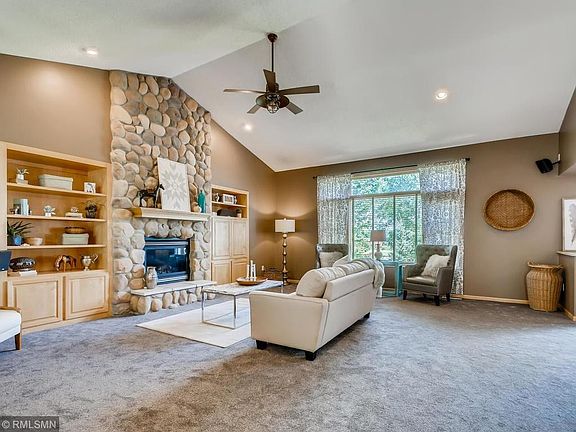 Charming, move-in ready, modified 2-story in highly coveted Westridge Hills neighborhood. Love from the moment you walk up. Outstanding curb appeal w/serene water feature, natural stone, paver patio, walkway & large boulders accenting the beautiful professionally landscaped lot. Bright foyer w/large closet, hardwood floors, open kitchen w/granite, tile, stainless steel appliances, center island, corner sink w/backyard views & walk-in pantry. Vaulted living room w/floor to ceiling stone fireplace, built-ins & large windows. Main level finishes w/half bath, tiled laundry, & large mudroom w/lockers & cubbies. Escape to the lower level family room w/second fireplace, wetbar, & walkout to the amazing private backyard with panoramic pond views & dock to the water. 3BR up w/private, vaulted master suite, fresh paint & new carpet thru-out. Garden, renovated deck, w/swings & heated garage with laser park assist! All this & in high demand Delano Schools! Quick close available.