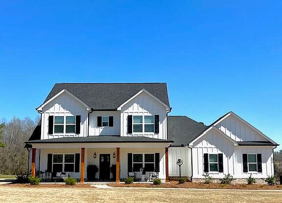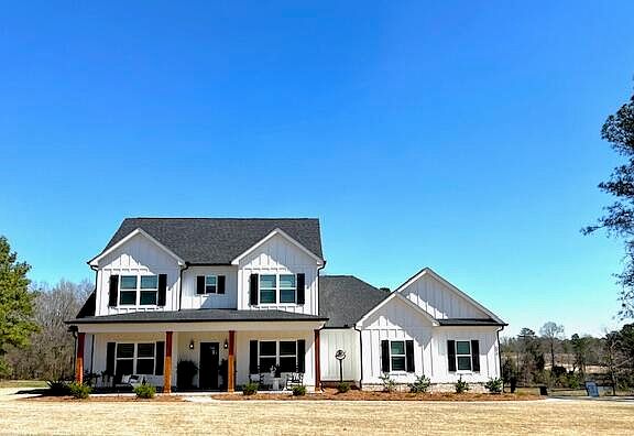 Boasting 5 bedrooms and 4 bathrooms spread over 2,553 square feet of living space, this home ensures a comfortable living experience for everyone. The exterior, constructed with durable Hardy board, promises longevity and low maintenance. The rocking chair covered front porch welcomes you to this beautiful home. The back porch is complemented by a cozy fireplace, perfect for outdoor gatherings or serene evenings.