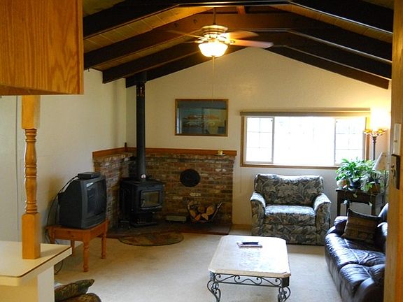Looking for the ideal mini-farm? This one's ready to go. The comfy home has a sunken living room with a certified woodstove, large kitchen with dining room, enclosed utility porch and lots of natural light coming in through the dual paned vinyl windows. Outside is the HUGE shop with 3 separate areas - one for your RV, the center area has work benches and a 576 SF loft and the other side can accommodate a wide variety of uses. There's also a 1 car garage with an attached shed for yard tools, lawn mower, etc., wood shed, 2 chicken coops and a pig enclosure, garden area and numerous fruit trees. The property is completely fenced and cross fenced and there's a 2 stall shelter and pasture area in front. Driveway and entire area in front of the shop is paved and there's an automatic gated entrance. All information is deemed reliable but not verified; anyone considering purchasing this property should perform their own investigation into the uses and condition of the property.