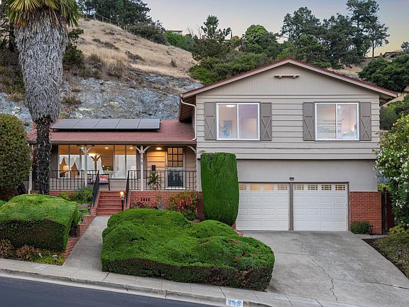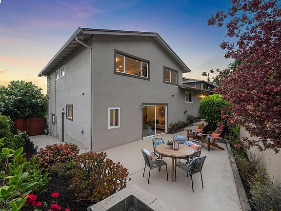 With bay views and the East Bay hills as your backdrop, this upgraded 4+BD/2.5 BA Mid-century home offers comfortable living in the Crestmont. Set back from the street, the 1785 SQFT home welcomes you with a garden and a rare level lawn in the hills. A giant picture window and fireplace make the spacious living room a cozy place to relax. Wonderful flow leads to the kitchen and dining room. The renovated eat-in kitchen features a double oven, stylish sink, and breakfast nook. From the dining room, step through a sliding glass door for great indoor/outdoor living on the patio. With lemon trees, raised beds, and open hillsides, it’s a perfect place to unwind, entertain, or play. Back inside, the four bedrooms are tucked away on the second floor for quiet and privacy. With two large custom closets, an ensuite bath, and hillside views, the primary suite is a refuge. Two of the bedrooms enjoy bay views and all have roomy closets. They share a hall bath. The refinished lower level provides excellent flexible space as a comfortable den, office, or play room. There’s also a laundry room, powder room, indoor access to the 2-car garage, and glass doors to the patio. Out your front door, explore the East Bay parks’ miles of trails and vibrant Montclair nearby.