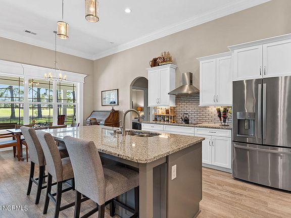 The custom kitchen is a chef's dream and offers granite countertops, a center island, and stainless-steel appliances, making it the perfect space to entertain while creating delicious meals. The living space features a 3-panel sliding door that opens to the tiled back porch, allowing for indoor-outdoor living and offering generous flow for entertaining. The back porch expands the length of the home and overlooks the par-five seventh hole, along with a gorgeous panoramic view of the golf course. With the five spacious bedrooms and four bathrooms, providing ample space for family and friends is not a problem. The spacious walk-in attic access provides convenient storage options, making it easy to keep your home organized and clutter-free. We also can't forget the amazing laundry/mud room with storage. Conveniently located near pristine beaches and the quaint town of Calabash with shops and dining, this home is the perfect retreat for those looking for a peaceful yet convenient beach lifestyle. No need to wait for new construction, this one is ready now!