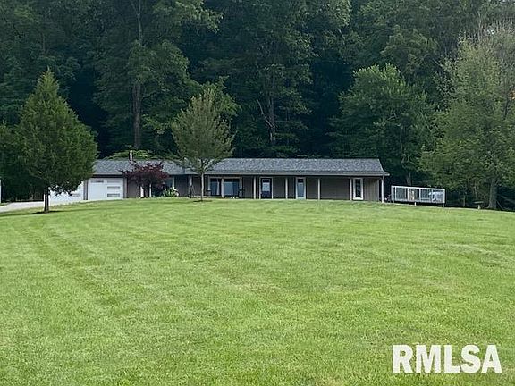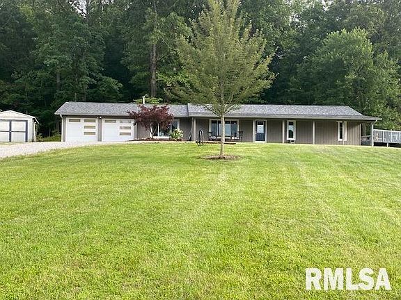 Fabulously remodeled 3 bedroom, 2 bath home on 3.24 Acres. Enjoy the quiet from atop the hill overlooking the neighborhood on your full length covered front porch. Or enjoy the deck with hot tub for 5. Great for entertaining. Inside was completely remodeled with a new kitchen with high end appliances, cabinets, Quartz countertops with huge island also with Quartz top. New windows (skylight too) and doors. Window World windows have a lifetime warranty. Family room had a wood burning fireplace built with real stone, insert, and lighting. The TV comes with the house. New roof this year on the house, Shed and Barn. The Shed is wired with electric service with 220 if one wants to use as a workshop. The Classic two Stall barn has water and electric (wiring for the barn will need to be redone) Vinyl laminate floors throughout, ceiling fans, all new guest bath, (New Quartz vanity top is ordered). Smart thermostat for convenience. The garage is a two car garage that the owner had made into his man cave as you will see that it has A/C and heat but it will also serve as a garage. The school district is Giant City and is a 10 minute drive to the University or town. Live in the country and be close to town, can't get much better than this.
