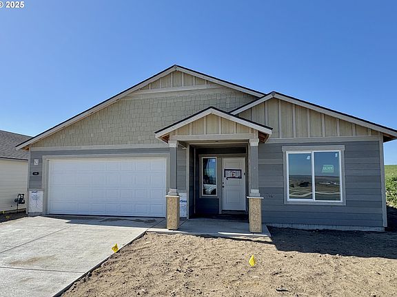 LOT:MS109 - Under construction - Estimated completion June 2025 - This new 1553 SQFT one level home includes a deluxe chef's kitchen with quartz counters, 36" upper cabinets, farm sink, island, and stainless steel appliances including gas range and dishwasher. Luxurious primary suite with large walk-in closet and ensuite with double sinks and walk-in shower. Additional stand out features include great room open design, soaring vaulted ceilings, 95% high efficiency gas forced air heating, air conditioning, gas fireplace, dedicated laundry room, fully insulated garage, exterior stone accents, and covered patio. The Sycamore in the desirable McClannahan Summit neighborhood in Umatilla OR. Built by award winning builder MonteVista Homes.