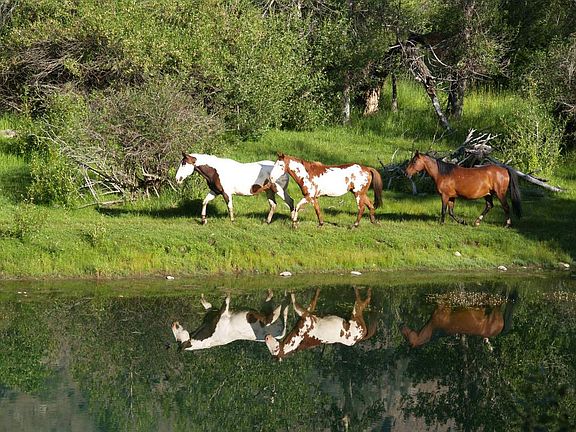 - Exterior Features: Acreage Fenced, Fishing, Flat Terrain, Horse Property, Hunting, Irrigated, Mountain View, Production Ground, Recreational, River Frontage, Shop, Spring, Storage Building, Adj to National Forest, Barn, Corrals, Creek, Guest House, Pond, Sprinklers, Dirt Ditches, Loafing Shed
