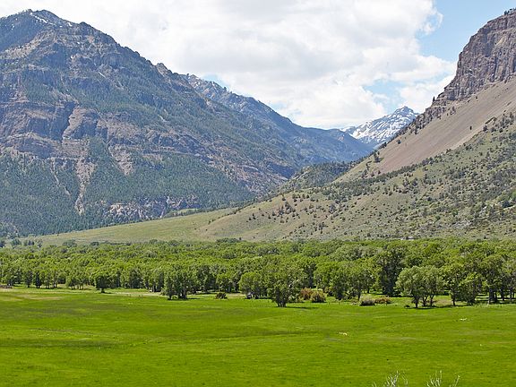 This spectacular 280 acre ranch has an exclusive end of the road and end of the valley location, just 40 miles southwest of Cody, WY. Its private setting allows for year round, back door access to thousands of acres of designated wilderness, all part of the Greater Yellowstone ecosystem. Towering granite mountains, waterfalls, and canyons surround the ranch on three sides. Two miles of South Fork river frontage deliver exceptional fly-fishing opportunities for native Yellowstone cutthroat, rainbows, brook, and German brown trout. Resident elk, deer, pronghorn and bighorn sheep herds occupy the valley pastures and rolling hillsides. Big game hunting, overnight pack trips and trail riding excursions can depart from the ranch gates in multiple directions for an unmatched sporting experience.