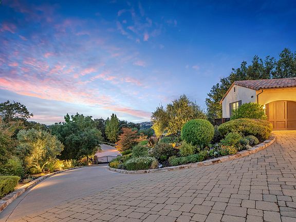 Be prepared to be enchanted by this Carmel inspired luxury estate! This exquisite manor will elevate your living experience! Nestled on top of the Alamo Highlands neighborhood, this property provides spectacular 360 degree views of the surrounding area including Mt Diablo & Las Trampas. Sitting on over a 2 acre lot this gated estate offers serenity & privacy. As you enter through the private gate you see the charming paver driveway adorned w/ lush landscaping & beautiful colorful flowers. Step through the custom door into the living & dining areas w/ gorgeous hardwood floors, beamed ceilings & 5 french doors leading you to the charming backyard courtyard with spectacular views, a sparkling pool & spa, built-in BBQ, cozy fireplace & a putting green.The gourmet kitchen is a chef’s dream w/ custom cabinetry, high-end appliances, a large island & kitchen & seamlessly flows into the family room. On the main level is the primary suite w/ a private patio to enjoy the views. The primary bath is an oasis of relaxation w/ a soaking tub, oversized shower & dual vanities. Also on the main level is an executive office & a bedroom w/ a full bath & 2 half baths. On the 2nd level are 4 additional bedrooms & 2.5 baths. A manicured pathway around the estate showcases the amazing views.