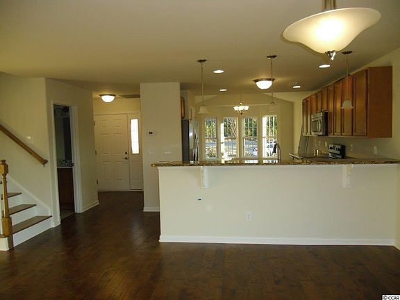 GOLF CART RIDE TO THE BEACH! ON THE LAKE! BRAND NEW! Ready to move into! Open concept Wave Rider floor plan. Owner's suite downstairs. Bedrooms 2 and 3 are privately located upstairs with the 2nd bath. Wave Rider-C Floor plan. The spacious owner's suite boasts a huge walk-in closet, wall closet, walk-in shower, and double vanity. A screened-covered porch overlooks the lake, fountain, and spacious backyard. Hand-scraped hardwood adorns the great room, dining room, foyer, and hall to the owner's suite. The lovely kitchen boasts 20x20 Onyx Stone Cream tile, Giallo Fiorito granite counter tops, 36” Birch-Tuscany Marsh cabinets with crown molding, Stainless Steel Whirlpool kitchen appliances, an upgraded Pfister faucet, nook and a bow window. A convenient 1/2 bath-powder room is located on the first level. Surfside Beach Club is a "Community of Friends" with a pool, clubhouse, and exercise room. A monthly newsletter and calendar of events offers community activities and outings: Healthy Bones Stretching Classes, Line Dancing, Ladies Luncheons, a Breakfast Bunch, a Book Club, Weekly Golf Outings, Covered-dish dinners, theme parties, Bocce Ball outings, Quoits, Friday night Game Night, and Tuesday Night Bunko. Visit the Surfside Beach Club Welcome Center Monday-Saturday 10-5pm or call the Listing Agents to visit. PRESS 214, 213, or 212 TO GAIN ENTRY WHEN THE GATE OFF 17-BYPASS IS CLOSED.