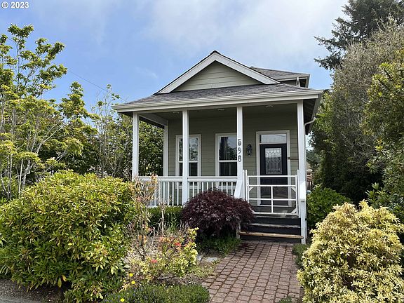 Super charming 2-level home located just minutes from Old Town Florence! This home features 3 bedrooms and 2 1/2 bathrooms with a covered front porch. Plenty of natural light & high ceilings throughout home. Living room features wood floors, ceiling fan & half-bath. Kitchen includes lots of cabinet space, pantry, BI dishwasher & door to the beautiful fenced side yard. Don't miss the primary bedroom with ceiling fan, attached bathroom with double sinks, soaking tub, plus his & hers walk-in closets! Upstairs, find another full bathroom, more storage space & two other bedrooms. Enjoy nice coastal days in the private courtyard and the side yard garden. Detached 2-car garage includes built-in storage. Come take a look today!