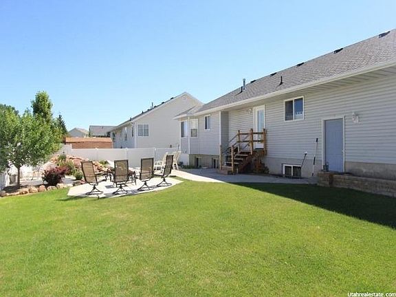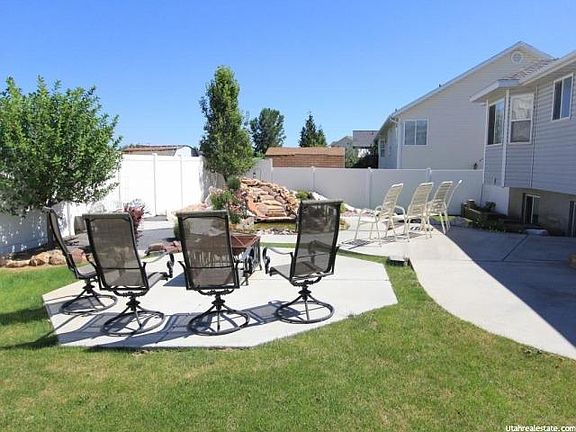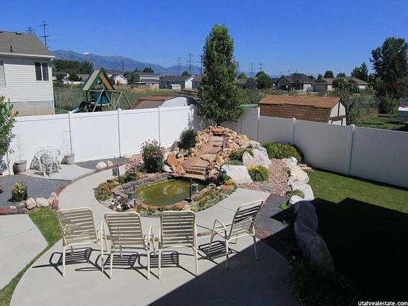 Absolutely gorgeous home with Artistic tiling, Highly desirable floor plan and amazing water feature in a beautiful back yard. Great entertainment areas both inside and out. Spacious kitchen with bar seating, 18' ceramic tile and black appliance, hardwood laminants. Master with walk in closet and soaking tub. Jetted tub in main bath. Extra large closets with built in shelving. French doors from game/workout room to bedroom. Electric fireplace in basement recreation room. Plenty of storage. Huge walk in closet in basement and bonus office. Cold storage room with shelving. Extra wide deep 2 car garage w/extra parking on side of house. 5 miles, 10 Min to Hill AFB. Excellent Property. 1 year lease