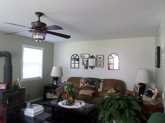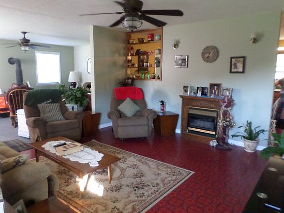 Nice home with plenty of privacy! Situated on 10.822 acres, this home features a large living room with a gas fireplace & wood burning stove, an eat-in kitchen, a master suite, & central electric heat & AC. There is a barn shaped 2 car garage, storage building, & a fenced in chicken coop. The property would be great for a small farm. Make an offer today!