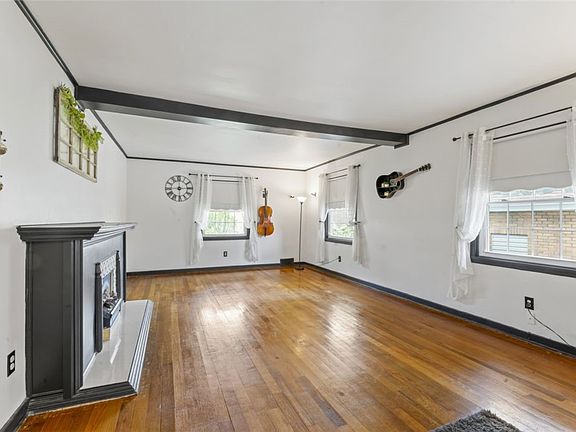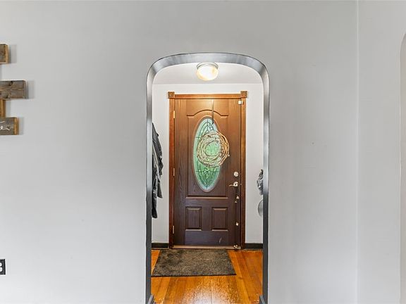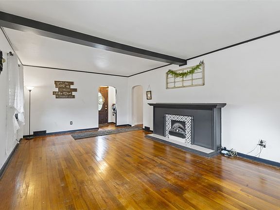 This lovely 2 story brick home is just waiting for your touches to make it your own. The large livingroom provides ample space for relaxation and entertainment.The fireplace in the living room is a show stopper with its black mantle and black and white tile look. The bright dinningroom is spacious enough for your get togethers and special occassions. Plenty of cabinet space, shelving and counter space in the kitchen for you to explore all your culinary desires. The second floor hosts an updated powder room and two roomy bedrooms with storage space. The home features hardwood flooring which is always a classic look adding warmth and character. The basement is where you will find a family room with another fireplace perfect for hanging out or hosting friends at the bar. Off street parking and an intergral garage provide additional security for your vehicle. The front porch is perfect for enjoying the day and watching the world go by.